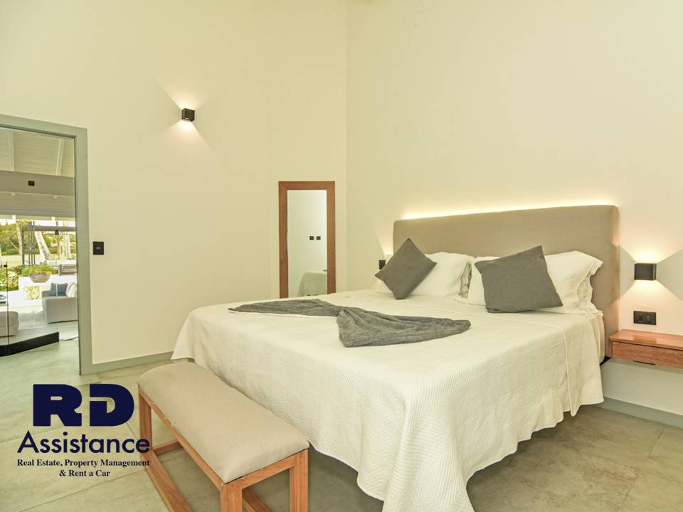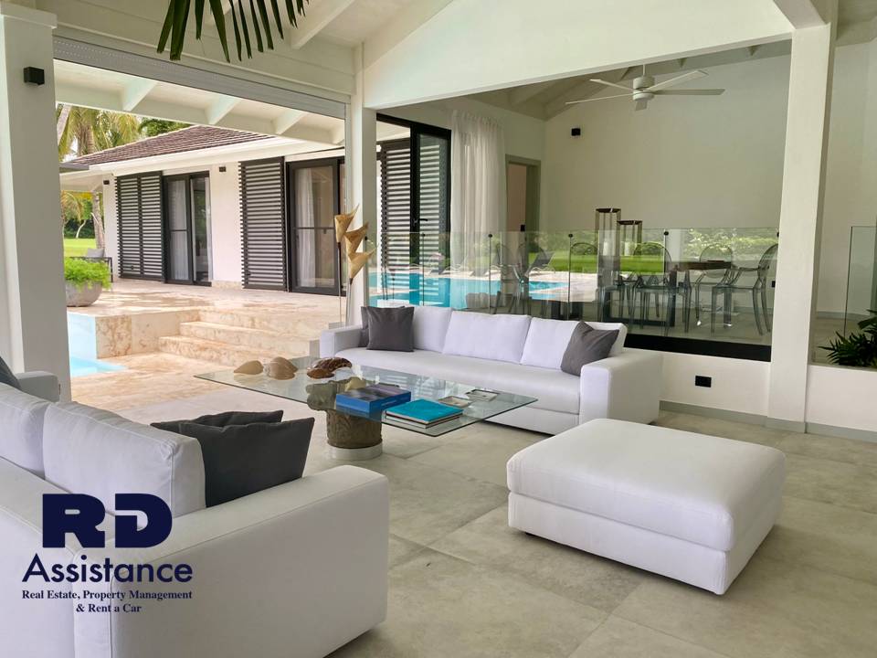 The villa accommodates up to 8 guests and is just a five-minute golf cart ride from Minitas Beach and an eight-minute ride from the Casa de Campo Marina, offering panoramic views of the golf course.