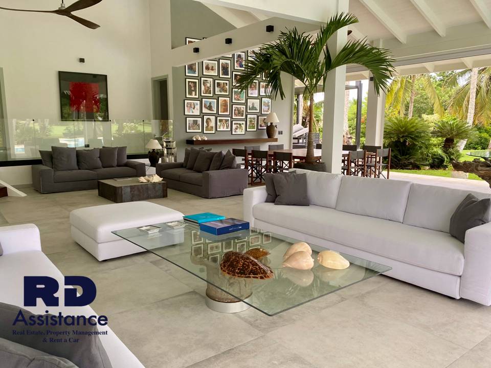 The villa accommodates up to 8 guests and is just a five-minute golf cart ride from Minitas Beach and an eight-minute ride from the Casa de Campo Marina, offering panoramic views of the golf course.