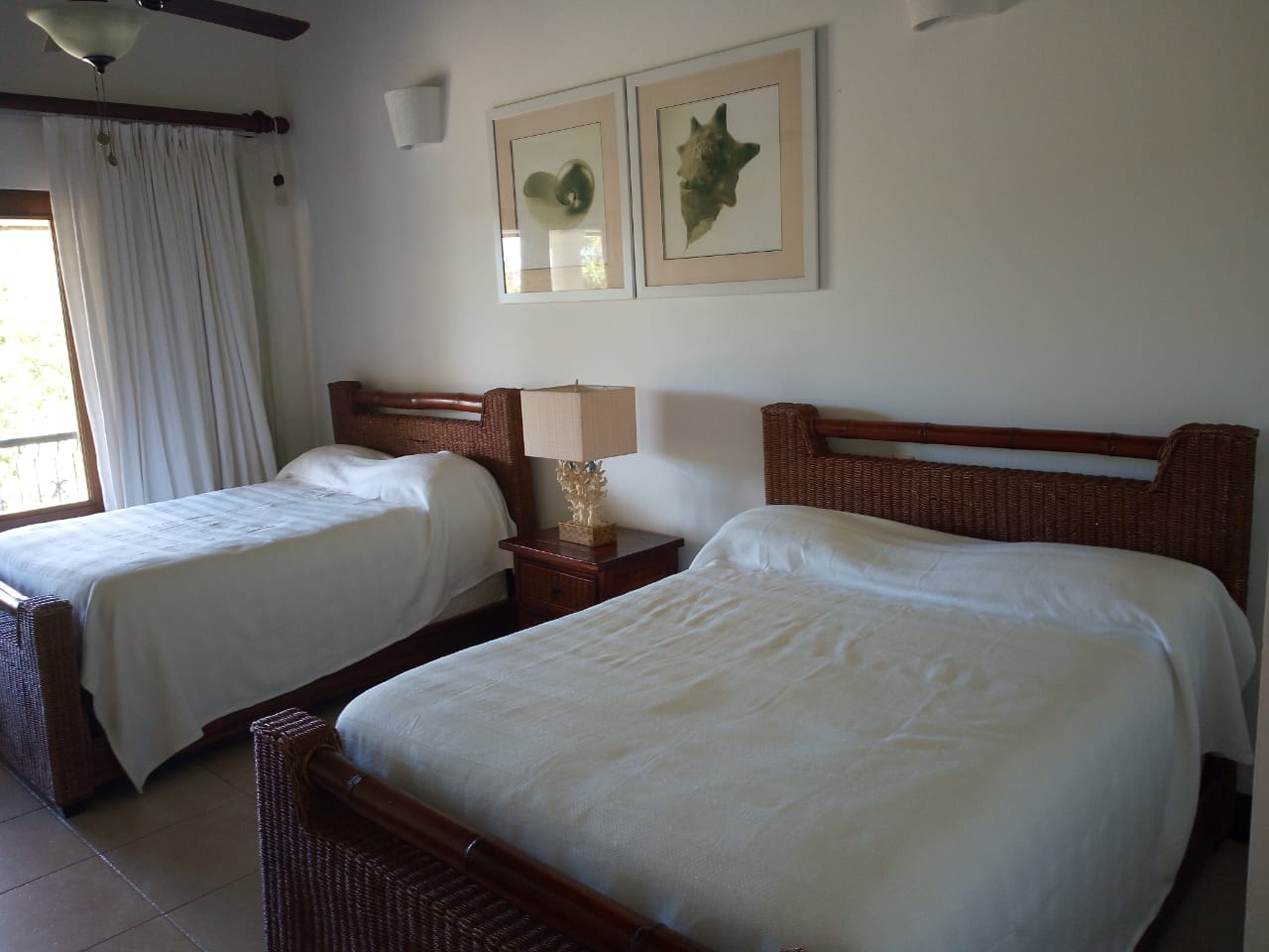 - Bedrooms: 6 elegant bedrooms, including 3 master suites with King beds and 3 with two Queen beds each. Every room features a private bathroom, air conditioning, ceiling fan, and high ceilings for a fresh and spacious ambiance. Upstairs, each bedroom has a private terrace to enjoy moments of relaxation.